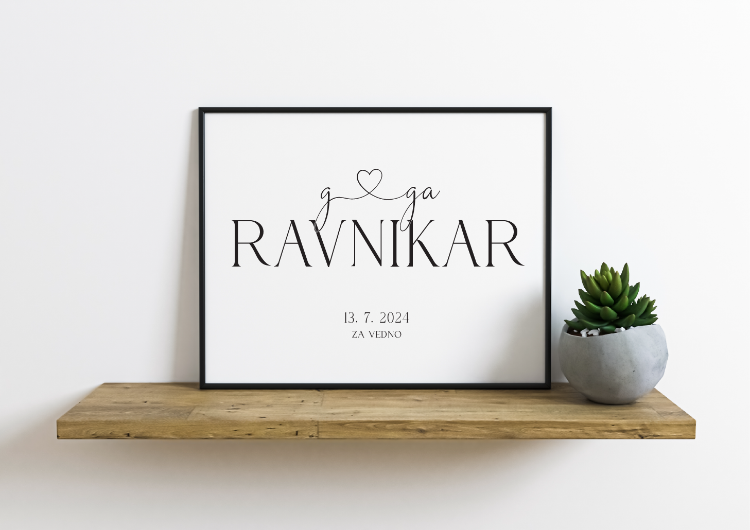 Vpišite želeni tekst. V roku 24-ih ur boste na vaš elektronski naslov prejeli predlog grafike. Po vaši potrditvi gre v tisk. Izberete lahko tudi okvir velikosti 30×40 cm ali pa ga kupite sami. Če želite večjo ali manjšo grafiko, pišite na finimini.dizajni@gmail.com.