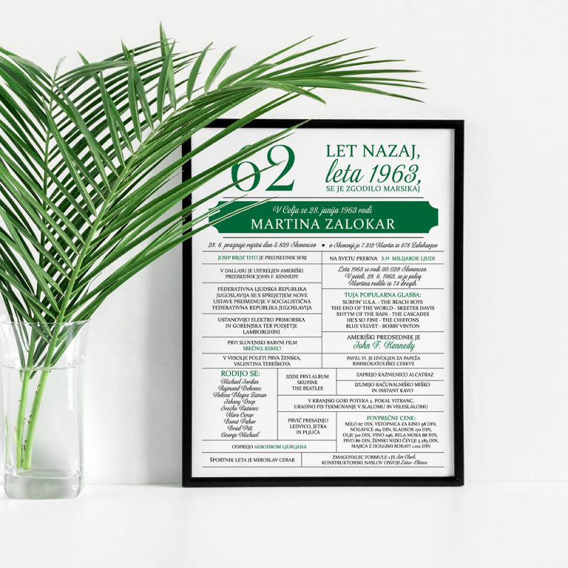 V 24-ih urah boste na vaš e-naslov prejeli grafiko v želeni barvi in seveda s podatki slavljenca. Po potrditvi gre grafika v tisk in jo prejmete v najkasneje treh dneh.