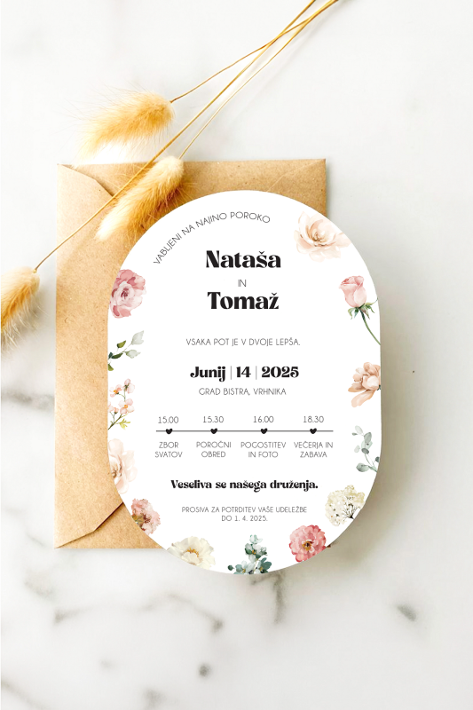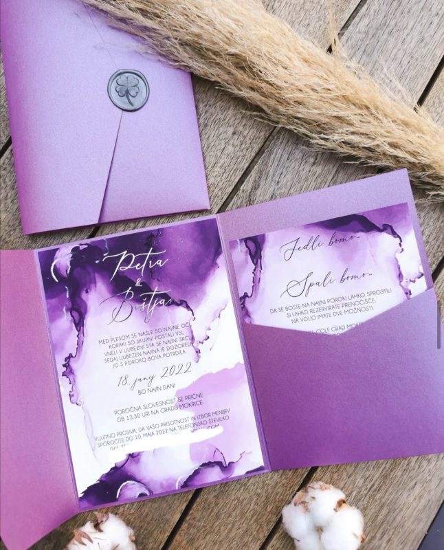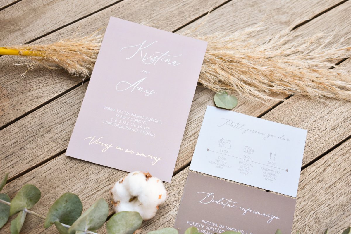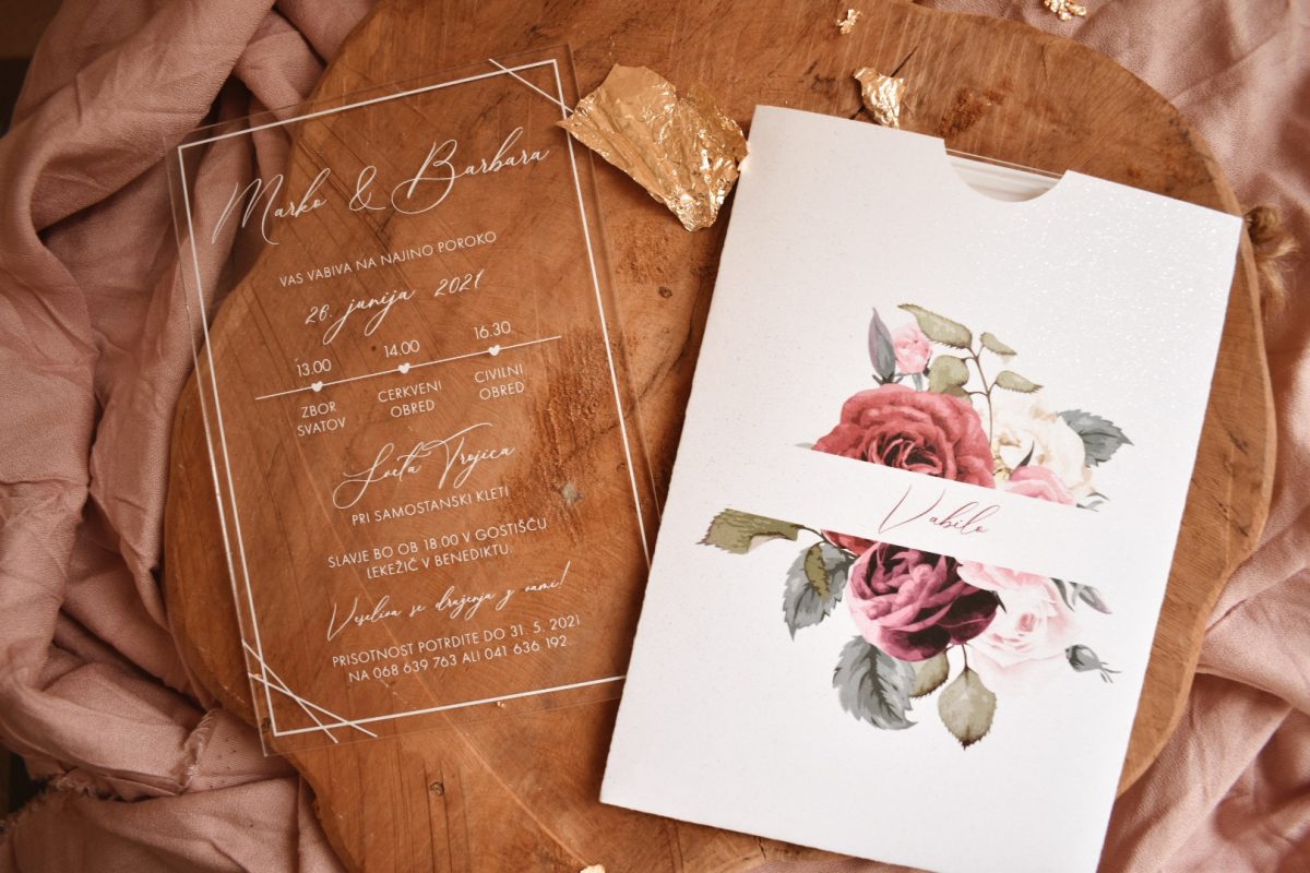 Ko sta določila vse zgoraj našteto je čas, da pobrskata po spletu in si shranita fotografije vabil, ki so vama všeč. Pri ogledu upoštevajta, da lahko barve, pisave, postavitev teksta in ostalo, spremenimo oziroma prilagodimo vajinim željam. Tako ustvarimo vabilo povsem prilagojeno vajini poroki.